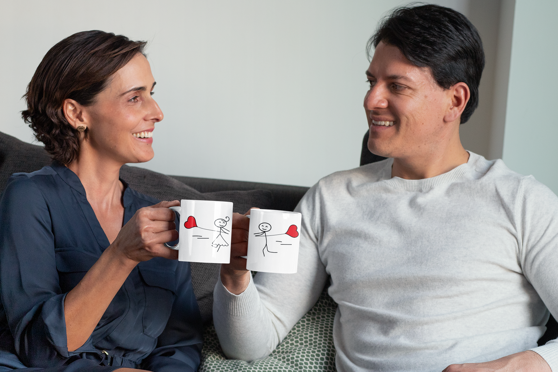 Popoln komplet skodelic za tebe in tvojega partnerja! Sploh obstaja boljši način, da svojemu partnerju sporočiš, kako rad ga imaš? Partnerjevo navdušenje nad vajinim ujemajočim kompletom je zagotovljeno! Ja, res je, pitje čaja ali kave bo iz teh skodelic imelo še dodatno sladkobo :)!